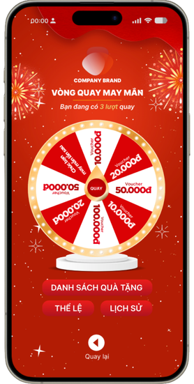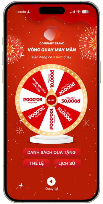 Tạo sự hứng khởi và tăng tương tác với tính năng vòng quay may mắn hấp dẫn: người dùng dễ dàng xem chương trình đang diễn ra, thể lệ và giải thưởng, tham gia quay nhận quà, theo dõi lịch sử kết quả và nhận thông báo trúng thưởng tức thì ngay trên Mini App.