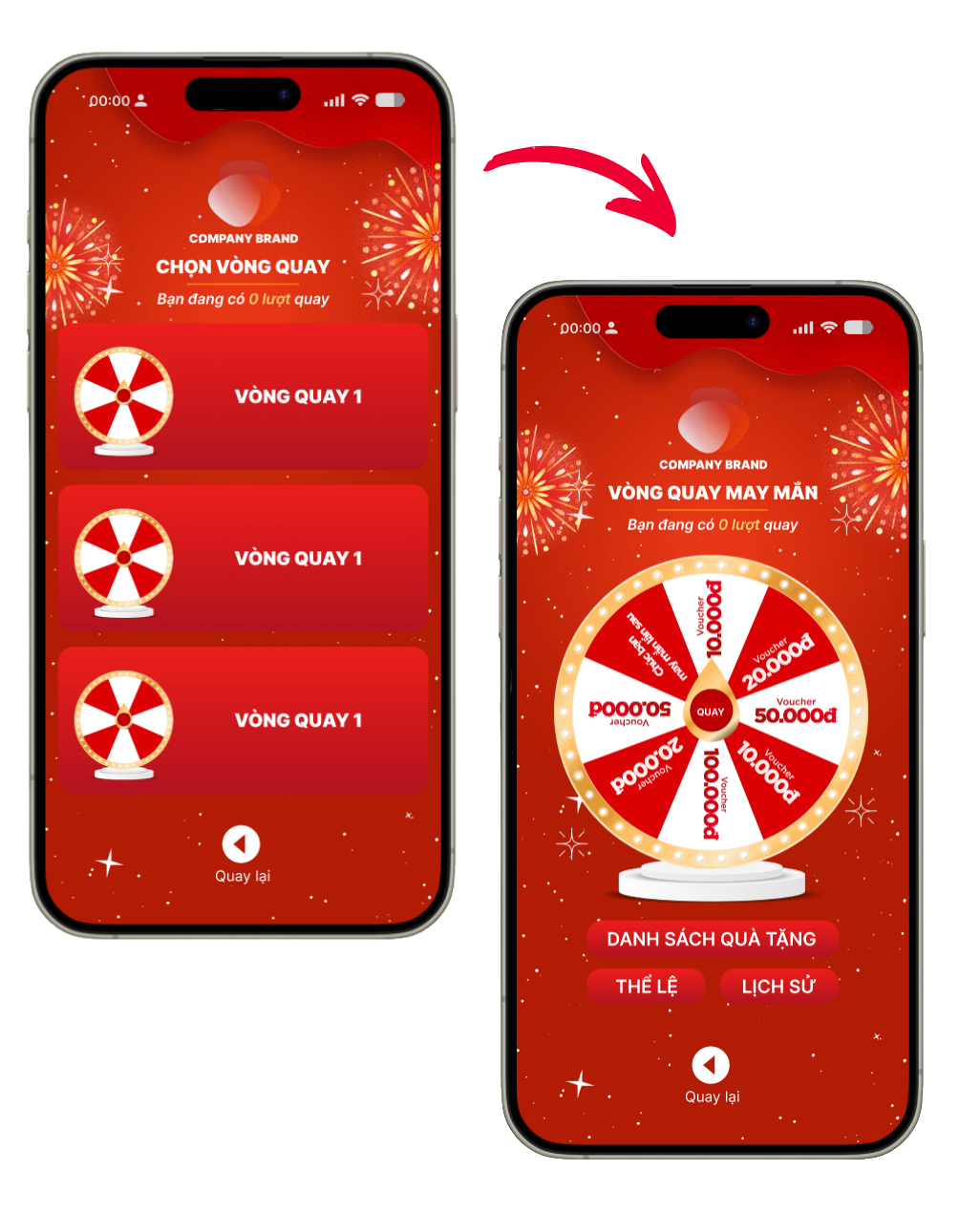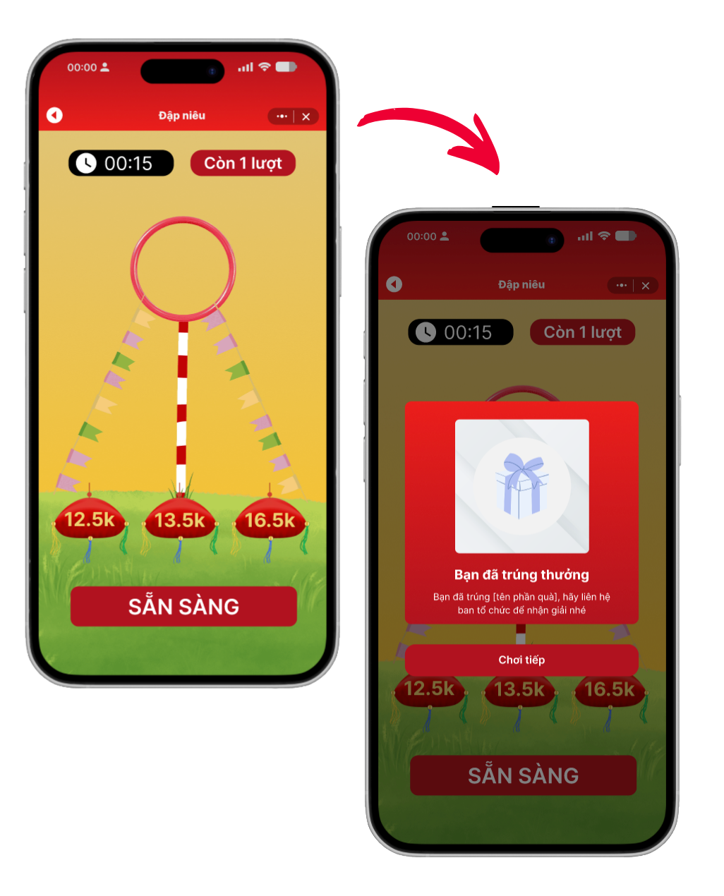 Dễ dàng triển khai cho campaign theo mùa, activation, ra mắt sản phẩm hoặc khuyến mại ngắn hạn với giao diện, luật chơi và quà tặng được tùy chỉnh nhanh theo từng chương trình.