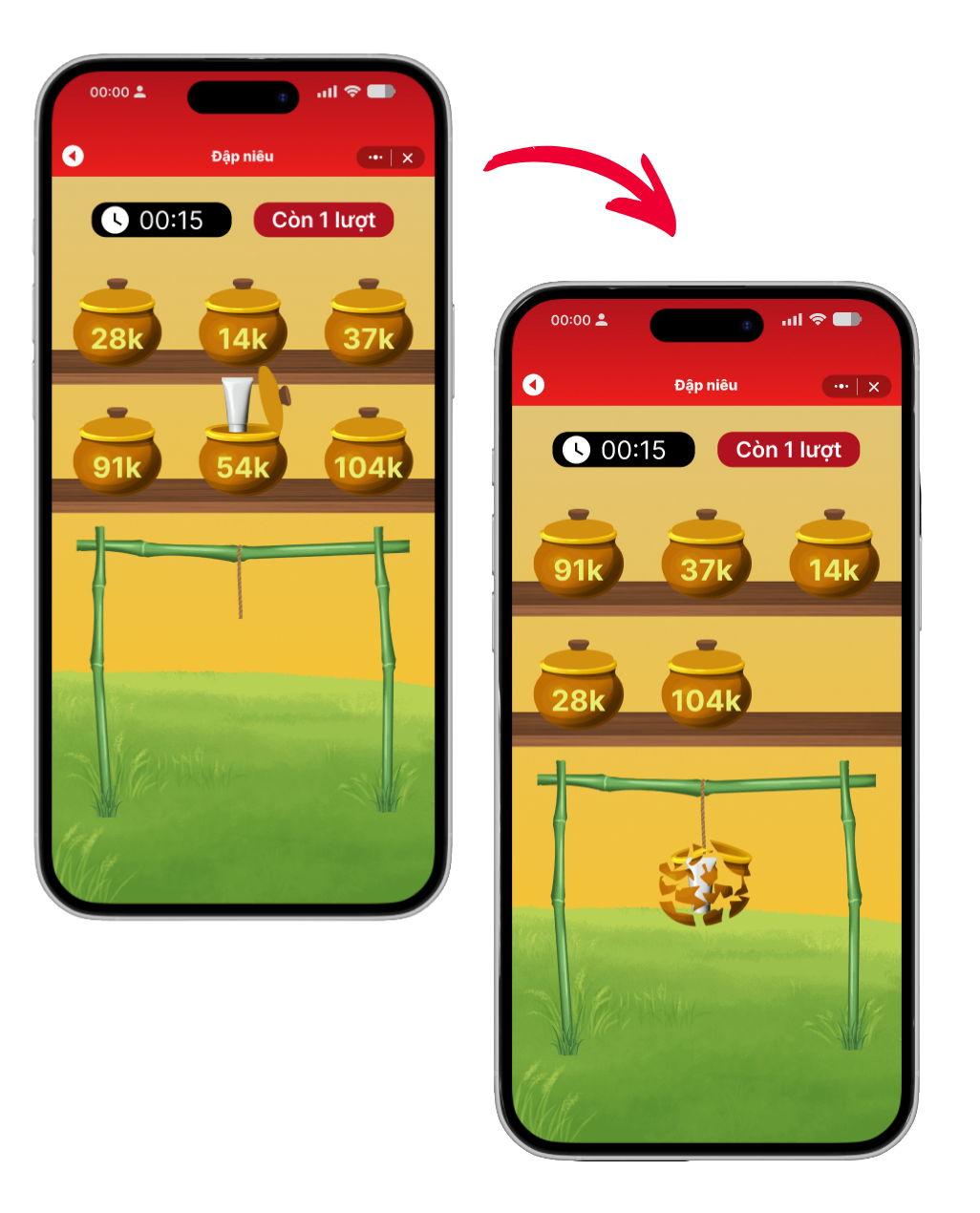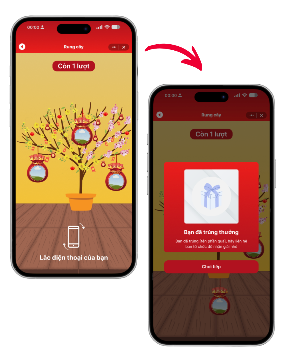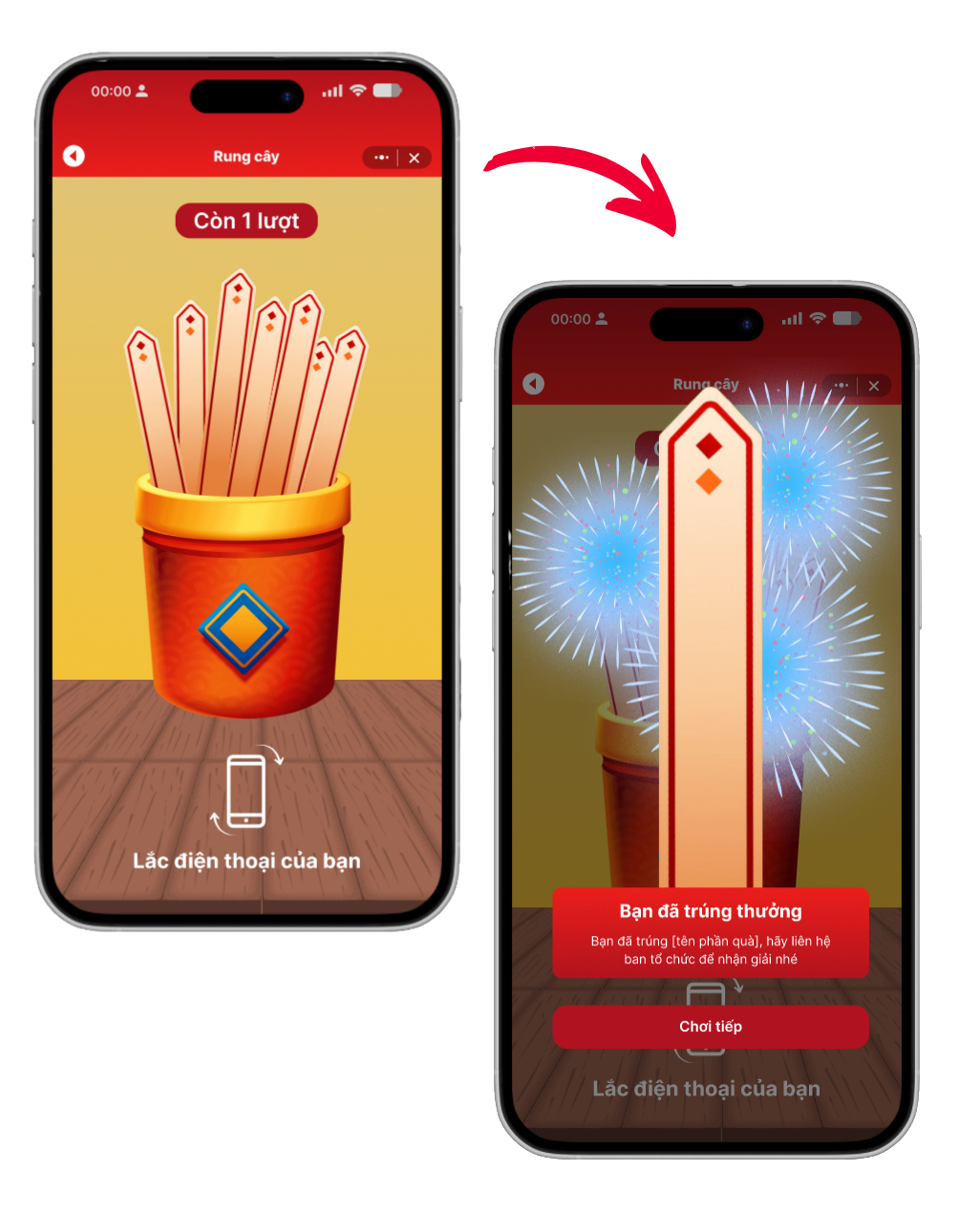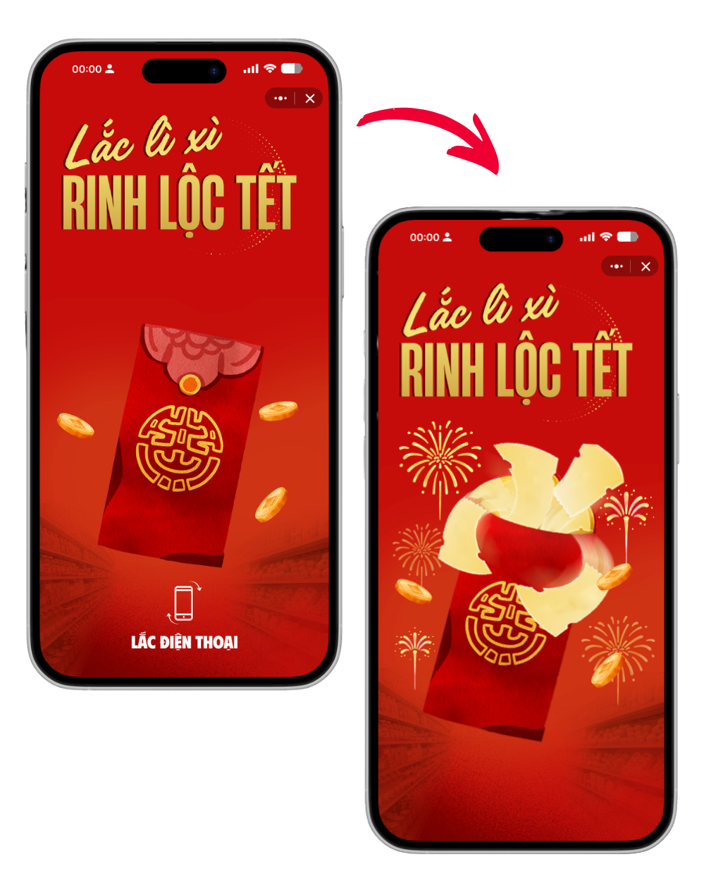 → Người chơi lắc điện thoại hoặc nhấn vào màn hình để mở bao lì xì