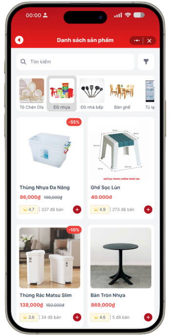 Khám phá sản phẩm nhanh chóng và thú vị hơn với tính năng tìm kiếm thông minh theo tên, kết hợp bộ lọc linh hoạt theo giá, danh mục hoặc trạng thái, giúp người dùng dễ dàng tìm đúng món cần chỉ trong vài chạm.