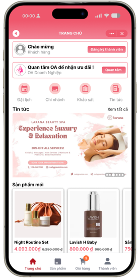 Là giải pháp giúp doanh nghiệp tập trung toàn bộ hành trình khách hàng vào một nền tảng duy nhất trong Zalo. Từ thu hút khách tại điểm bán bằng mã QR, quản lý thành viên, tích điểm loyalty, khuyến mãi cá nhân hóa, bán hàng, quản lý chi nhánh, tiếp thị liên kết đến chăm sóc sau mua bằng thông báo ZBS — tất cả được kết nối liền mạch.