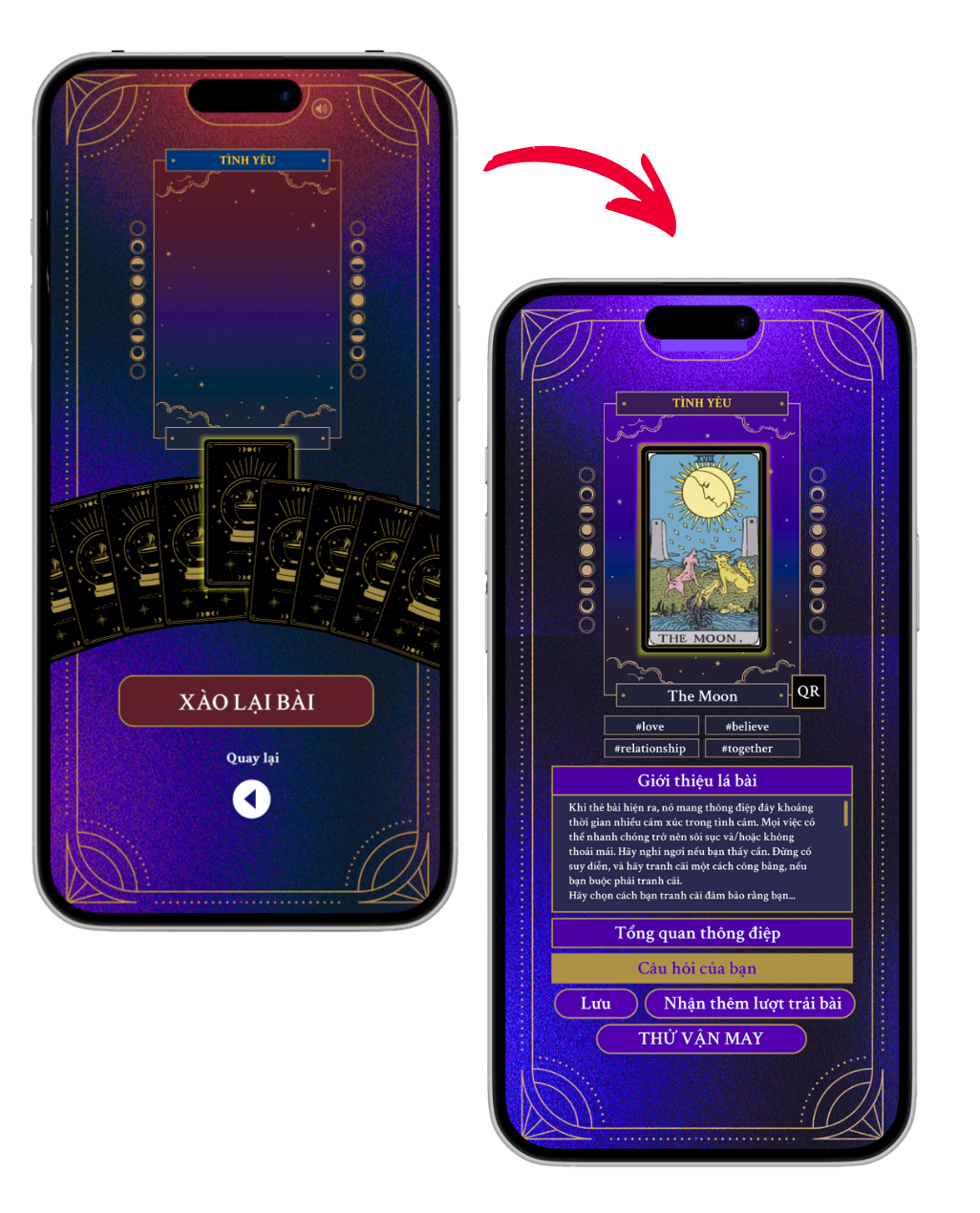 → Mỗi ngày khi truy cập game, người chơi có 01 lượt rút bài Tarot từ hệ thống