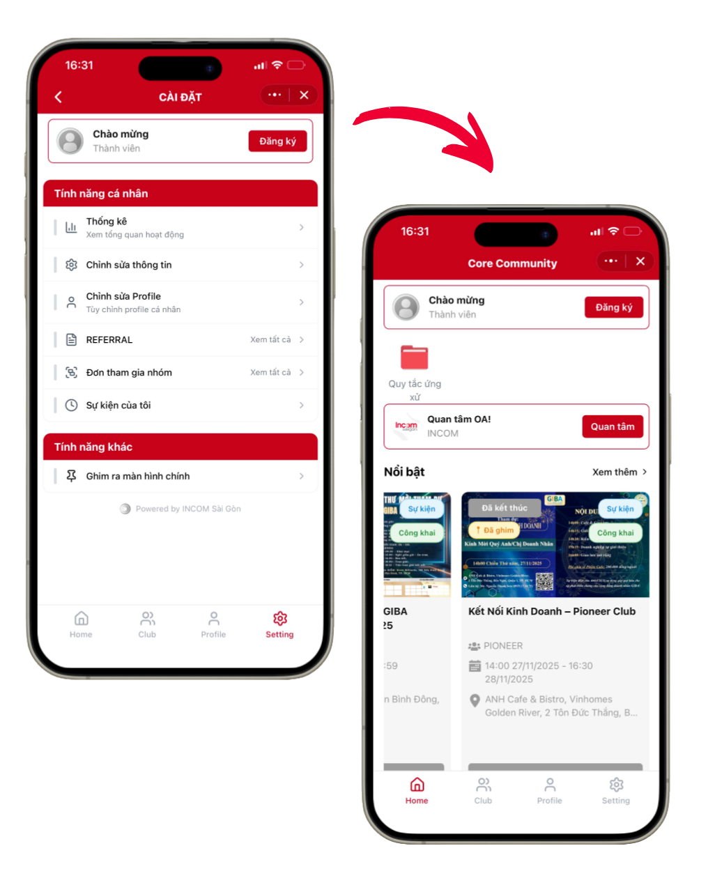 App Hội/Nhóm/Cộng đồng là nền tảng giúp kết nối, quản lý và phát triển cộng đồng một cách hiệu quả. Từ đăng tin, tổ chức sự kiện, quản lý thành viên đến tương tác, trao đổi thông tin – tất cả được thực hiện dễ dàng trên một ứng dụng duy nhất. Giải pháp giúp tăng sự gắn kết, thúc đẩy hoạt động nội bộ và xây dựng cộng đồng năng động, chuyên nghiệp, phù hợp cho mọi mô hình hội nhóm hiện nay.