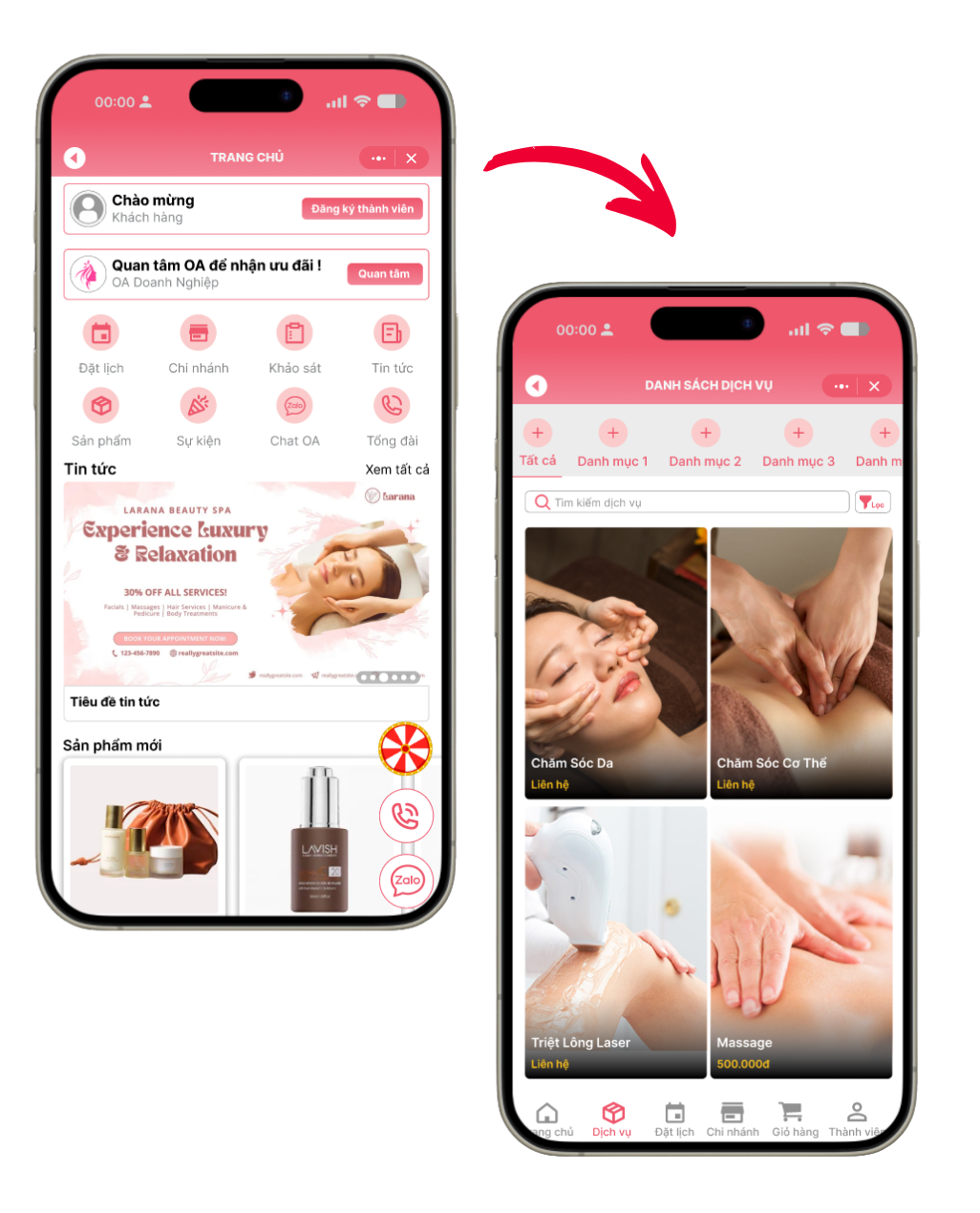 Mỗi ngành như Spa, F&B, bán lẻ, kinh doanh xe, quản lý cộng đồng hay hành chính công đều có quy trình vận hành và nhu cầu khác nhau, vì vậy chúng tôi đã phát triển sẵn các mini app chuyên biệt để đáp ứng đúng từng bài toán thực tế. Nhờ đó, doanh nghiệp có thể triển khai nhanh chóng, vận hành hiệu quả và tối ưu trải nghiệm khách hàng.