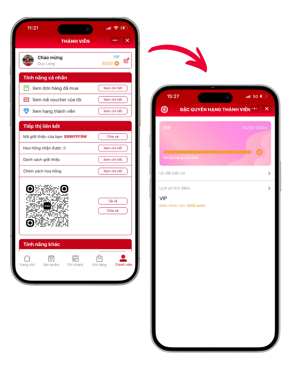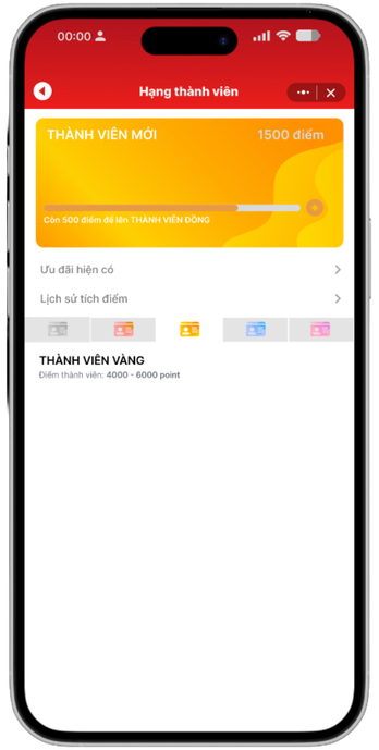 Tăng hứng thú mua sắm với hệ thống hạng thành viên hấp dẫn: mỗi giao dịch đều được tích điểm để thăng hạng, mở khóa ưu đãi và voucher độc quyền theo từng cấp, đồng thời dễ dàng theo dõi toàn bộ lịch sử cộng trừ điểm minh bạch.
