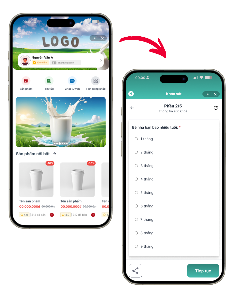 App Ngành Sữa là giải pháp giúp doanh nghiệp kết nối trực tiếp với khách hàng và xây dựng hành trình chăm sóc dinh dưỡng toàn diện. Người dùng có thể dễ dàng đặt hàng, theo dõi đơn, nhận tư vấn sản phẩm và cập nhật chương trình ưu đãi ngay trên ứng dụng. Đồng thời, doanh nghiệp quản lý dữ liệu khách hàng, tối ưu kênh phân phối và nâng cao trải nghiệm mua sắm, tạo sự gắn kết bền vững với người tiêu dùng.